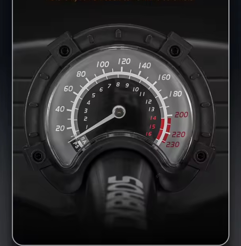 Presión máxima: 160PSI Válvula: válvula Schrader/Presta Material: Acero sin costuras/aleación de aluminio + plástico de ingeniería Tamaño: aproximadamente 662311cm Peso: aproximadamente 972G Altura: retráctil ≈ 66cm Estiramiento ≈ 110cm Diámetro: aproximadamente 32mm